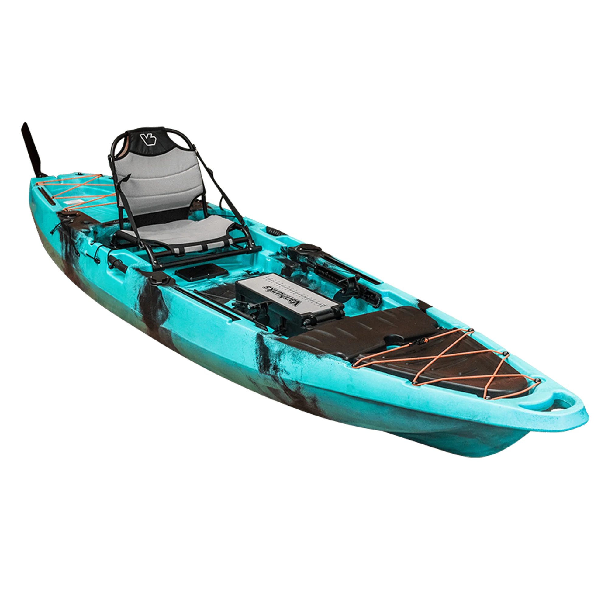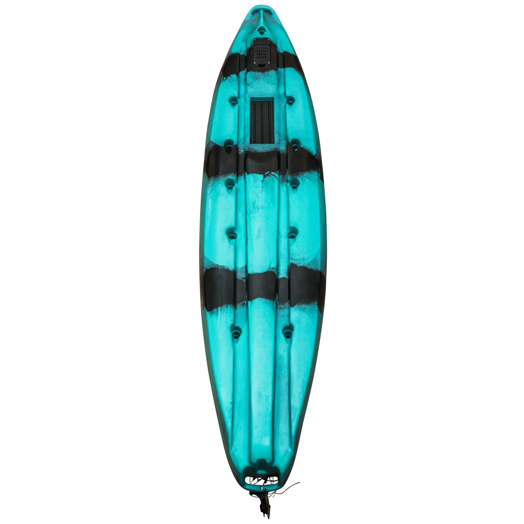Are you tired of having to choose between a fishing kayak and a recreational one? The Zambezi 12.6ft Kayak is the answer to your dilemma. Merging the finest aspects of both types, we proudly present the Zambezi, the ultimate all-rounder. Offering the versatility of a recreational kayak along with the features of a dedicated fishing kayak, the Zambezi takes it a step further by allowing you to transform it into a Prop, Fin drive or even insert an Electric Trolling motor to upgrade your Zambezi kayak into a propelled kayak. With a simple installation process, you can unlock the potential of hands-free paddling, opening up a realm of new possibilities for your adventures. Standout Storage Solutions: The Zambezi’s spacious storage capacity is immediately evident. A secure, lockable rectangular hatch situated behind the Aluminium seating grants access to a generous storage area for fishing gear. The bow hatch is reinforced with cross-braced bungee cords, ensuring your anchor and safety equipment are securely stowed. Additionally, a center console hatch conveniently opens towards the paddler, enabling easy access to your essentials. At the front of the elevated aluminium seating, a toolbox hatch awaits your fishfinder setup. This compartment offers ample room for a sealed lithium battery and extra cabling, keeping your deck organized and free from clutter. The strategically positioned scupper plug with a perforated 4mm nylon cover and brass inserts is ideal for mounting your sonar, reducing the need for excess wiring.