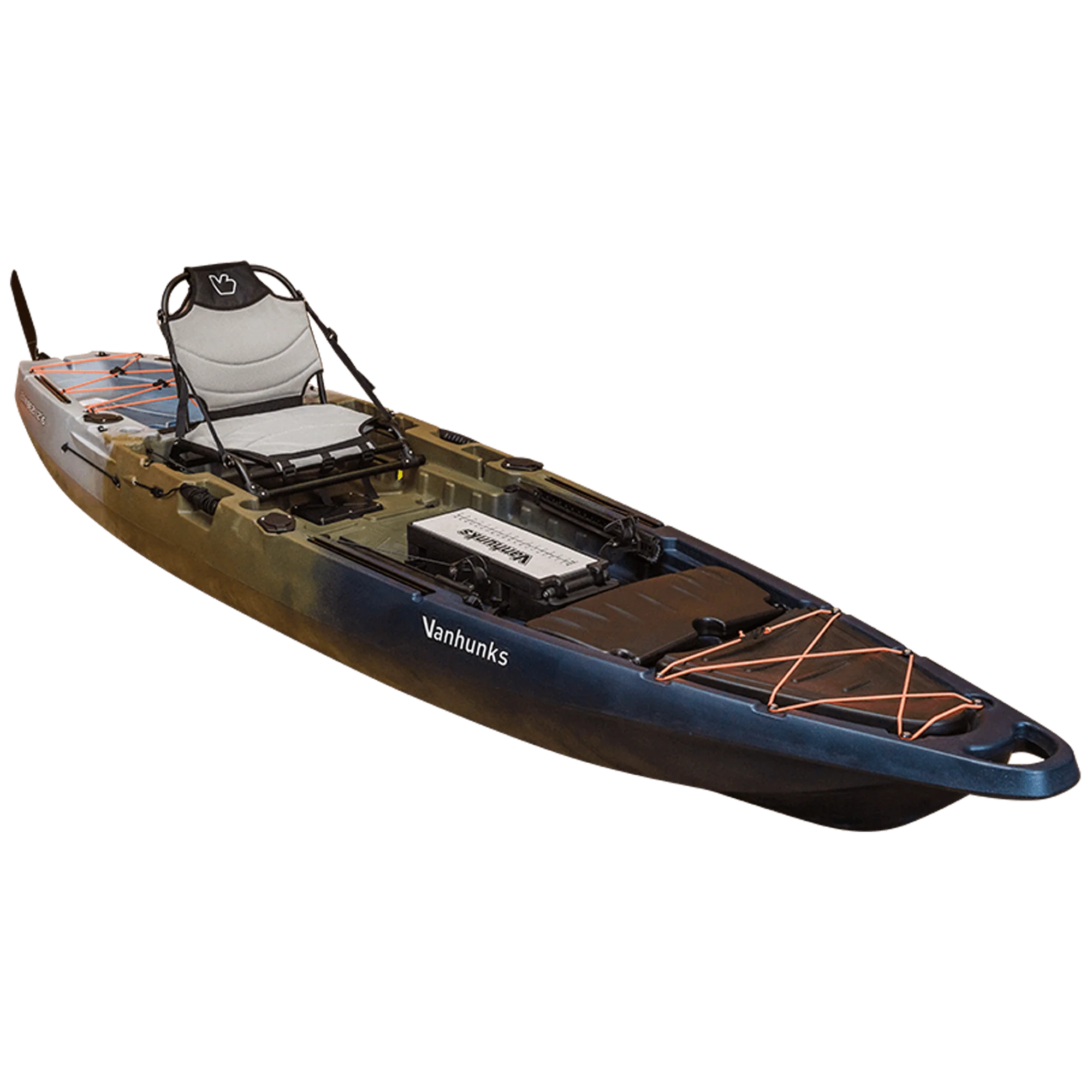 Are you tired of having to choose between a fishing kayak and a recreational one? The Zambezi 12.6ft Kayak is the answer to your dilemma. Merging the finest aspects of both types, we proudly present the Zambezi, the ultimate all-rounder. Offering the versatility of a recreational kayak along with the features of a dedicated fishing kayak, the Zambezi takes it a step further by allowing you to transform it into a Prop, Fin drive or even insert an Electric Trolling motor to upgrade your Zambezi kayak into a propelled kayak. With a simple installation process, you can unlock the potential of hands-free paddling, opening up a realm of new possibilities for your adventures. Standout Storage Solutions: The Zambezi’s spacious storage capacity is immediately evident. A secure, lockable rectangular hatch situated behind the Aluminium seating grants access to a generous storage area for fishing gear. The bow hatch is reinforced with cross-braced bungee cords, ensuring your anchor and safety equipment are securely stowed. Additionally, a center console hatch conveniently opens towards the paddler, enabling easy access to your essentials. At the front of the elevated aluminium seating, a toolbox hatch awaits your fishfinder setup. This compartment offers ample room for a sealed lithium battery and extra cabling, keeping your deck organized and free from clutter. The strategically positioned scupper plug with a perforated 4mm nylon cover and brass inserts is ideal for mounting your sonar, reducing the need for excess wiring.