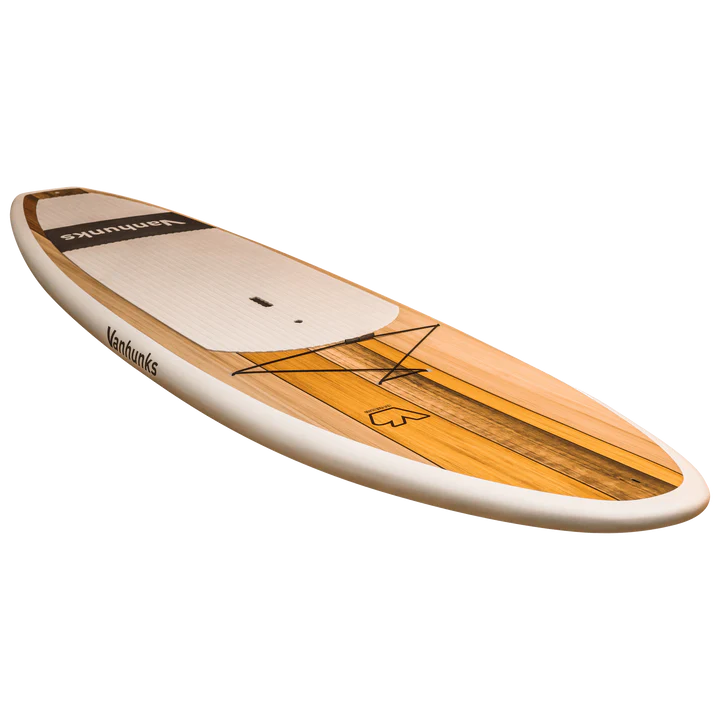 The Induna Stand Up Paddle Board, the latest addition to the Vanhunks SUP family with a fresh new look and design. Designed to maintain its reputation as the most stable board in our range, the Induna is perfect for both flatwater cruising and small surf adventures. One of the key features of the Induna is its exceptional stability, thanks to its generous volume, making it easy for riders of all levels to maintain balance and confidence on the water. Whether you’re a beginner or an experienced paddler, the Induna ensures a smooth and enjoyable experience. Crafted using cutting-edge technology, this stand-up paddle board is engineered to be remarkably versatile, strong, and durable, capable of withstanding the forces of nature. The construction comprises high-density CNC-shaped EPS foam, fiberglass, and thermoformed polyethylene, all fused together with ABS and PC materials, ensuring maximum durability and longevity. The molded press system not only makes the board lightweight but also provides a watertight seal for added protection. The Induna’s design features a rounded nose, providing more surface area on the water. This increased surface area translates to enhanced stability and a better glide, allowing you to effortlessly maneuver through various water conditions. Equipped with a single fin, the Induna minimizes drag and ensures excellent traction, making it a breeze to paddle straight for leisurely rides with friends, family, or even your furry SUP companion. The board’s tracking ability is exceptional, allowing you to effortlessly explore waterways and take in the beauty of your surroundings. Whether you’re a casual paddler looking for a reliable and stable board or an adventurous soul seeking new surf experiences, the Induna Stand Up Paddle Board is your perfect companion. Embrace the freedom of gliding across the water with ease and confidence, all while knowing you have a board built to endure and perform under any condition. Experience the thrill of stand-up paddling like never before with the Induna SUP board.