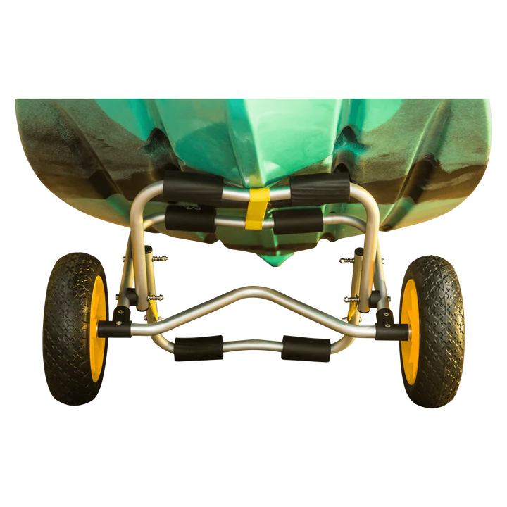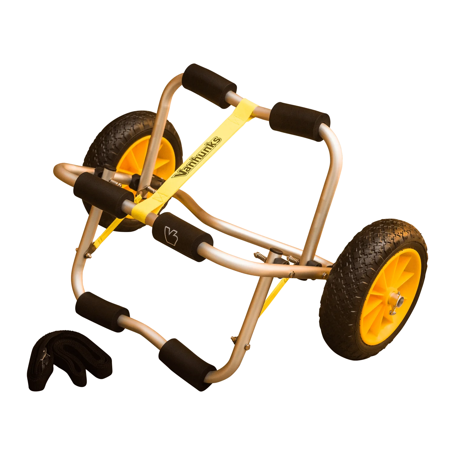 The Vanhunks Kayak Trolley has a shipping weight of 3.8kg / 8lb and a maximum capacity of 75kg / 165lb, therefore making it suitable for a wide range of vessels. Its aluminum frame and pump-free plastic wheels guarantee long-lasting performance.