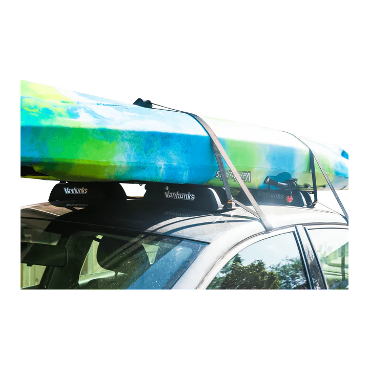 Highly Compatible Rubber Roof Racks for Safely Transporting Surfboards, Kayaks, and More Discover the ultimate versatility of our rubber roof racks, designed to seamlessly accommodate a wide range of items, from surfboards and stand up paddle boards to ladders, kayaks, surfskis, and beyond. The Vanhunks Rubber Roof Rack presents a harmonious blend of softness and durability, guaranteeing the protection of both your vehicle and your precious cargo during transit. Installing our rubber roof rack is a breeze. Simply position the rubber roof racks as desired, thread the robust wide straps through your car’s doors, and fasten them securely on the interior. Engineered with care, the flexible, rugged rubber, ensure exceptional grip on diverse surfaces and a firm hold on your car’s roof. After your journey, effortlessly detach the rubber roof rack, which boasts a compact profile for convenient storage – a distinct advantage over traditional bulky roof racks. With an impressive load capacity of 75kg and certified for safe use at speeds of up to 80km per hour, the Vanhunks Rubber Roof Rack stands ready to serve. Compatibility spans across various vehicle makes and models, making it an ideal choice for adventurers seeking a reliable and adaptable solution. Specifications: Max load capacity 75kg Length: 95cm Width:15cm Height: 7.5cm Weight: 4Kg Length: 95cm