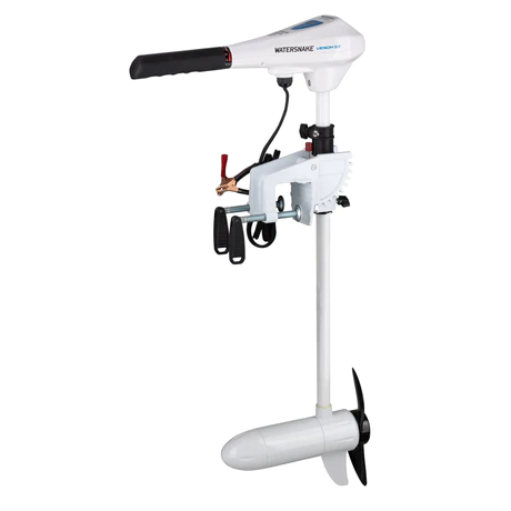 Our Watersnake Venom SXW electric motors provide saltwater anglers with a versatile range of tiller-steer transom-mount motors that are loaded with clever features. The Venom SXW range comprises five motor designs. The 34lb and 54lb in the 26” short shaft design are perfect for canoes, tenders, inflatable boats and small tinnies. The 34lb/30”, 44lb/36” and 54lb/42” are each suited to boats ranging from small tenders and tinnies up to dedicated estuary and inshore sportfishing boats.